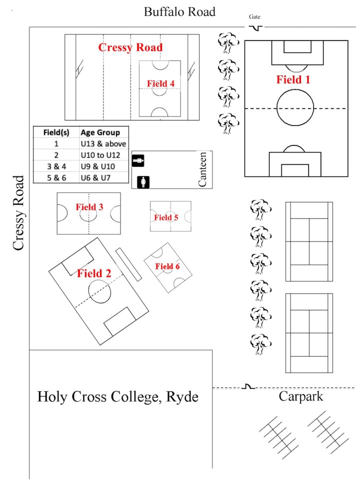 1 – 3/4 size fields for juniors (under 10’s & 11’s)
